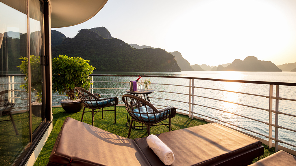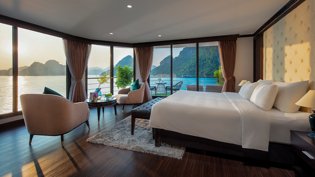 - 100% phòng nghỉ có ban công riêng tư view vịnh