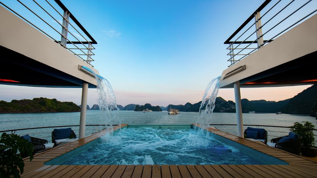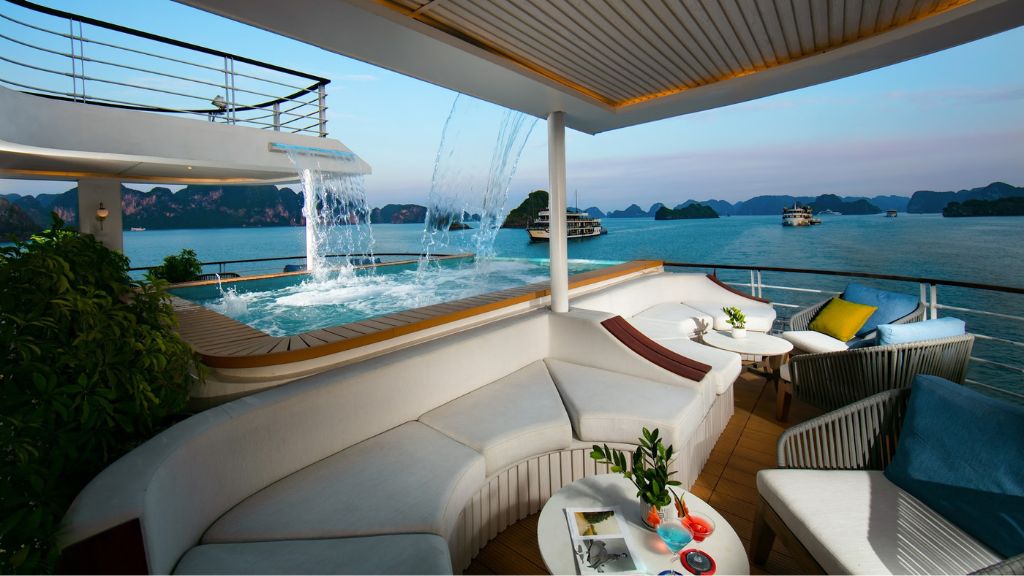 - Thư giãn tại bể sục jacuzzi ngoài trời và thác nước nhân tạo